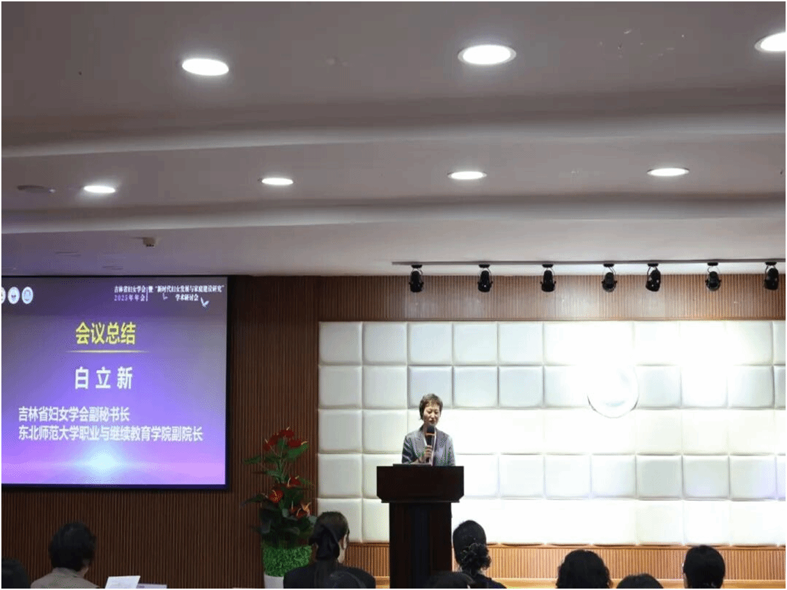 会议闭幕式由吉林省妇女学会副会长、延边大学金花善教授主持。各平行论坛汇报人总结了分组讨论情况,分享了主要观点和共识。吉林省妇女学会副秘书长白立新作会议总结。她指出,本次年会汇聚了省内外妇女理论研究领域的知名学者,形成了一批高质量、有影响力的研究成果,为全省乃至全国妇女发展与家庭建设提供了有益参考。学会将继续团结带领广大会员,深入开展妇女问题研究,积极建言献策,为促进妇女事业高质量发展、推动家庭文明建设贡献更多智慧与力量。