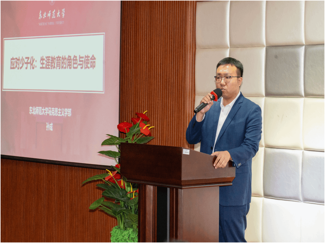 东北师范大学孙成副教授关注“应对少子化:生涯教育的角色与使命”主题,提出通过倡导“综合的”“全面的”人生观导向,打造家庭与事业并重的生涯教育模式应对少子化问题。