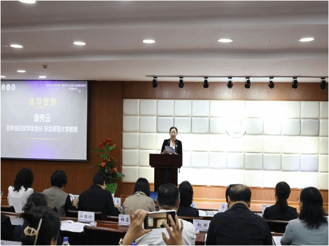 吉林省妇女学会会长、东北师范大学康秀云教授在致辞中深情回顾了吉林省妇女学会成立四十年的光荣历史和取得的丰硕成果,重点介绍了2023年重新激活学会后完成换届工作的历程。目前学会会员已经近300名,会员单位增加到了12个,并成立了党支部和妇联。她强调学会将继续发挥桥梁纽带作用,凝聚学界智慧,自觉坚持以习近平新时代中国特色社会主义思想为指导,着力服务国家重大战略需要,着力建设高端学术交流平台,着力加强对话和协同,推动学会高质量发展。